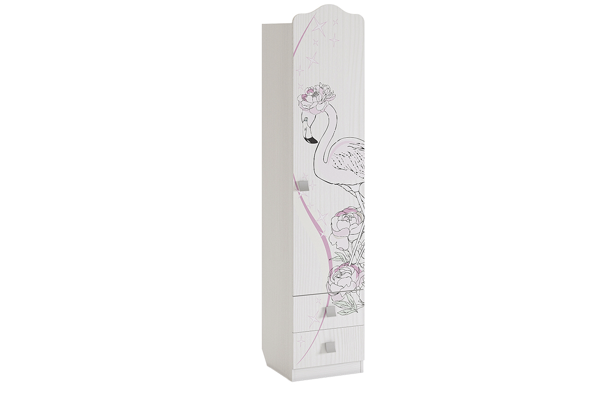 Модный и стильный шкаф со сказочным принтерным рисунком на фасадах - находка для детской комнаты. Рисунок устойчив к истиранию и ультрафиолету. Оснащен штангой для одежды, двумя вместительными выдвижными ящиками для белья и двумя съемными полками.