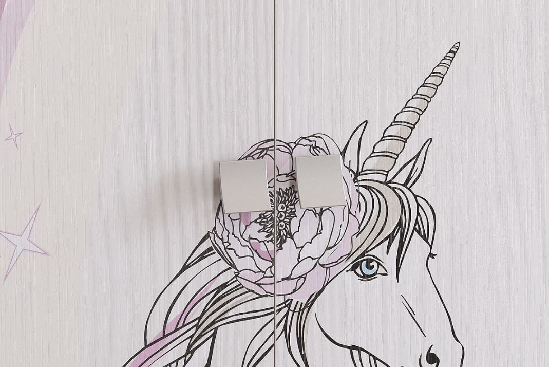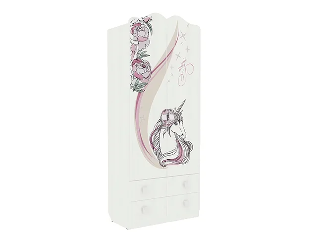 Модный и стильный шкаф со сказочным принтерным рисунком на фасадах - находка для детской комнаты. Рисунок устойчив к истиранию и ультрафиолету. Оснащен штангой для одежды и двумя вместительными выдвижными ящиками для белья.