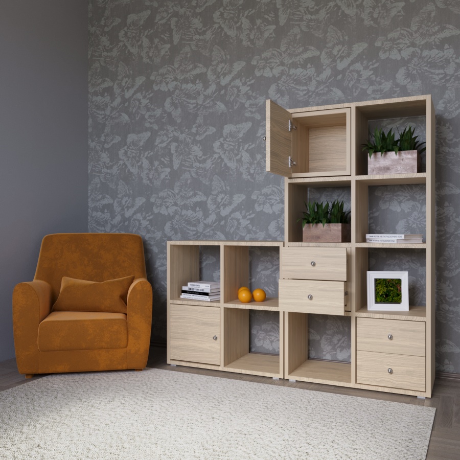 —КОРИНН Стеллаж 2 х 4 ячейки / Дуб сонома