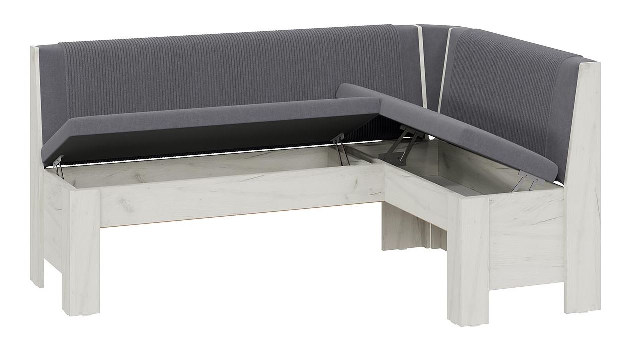 Угловая скамья «Ганновер» (Дуб крафт белый / Серый микровелюр) – Стильное хранение и комфорт