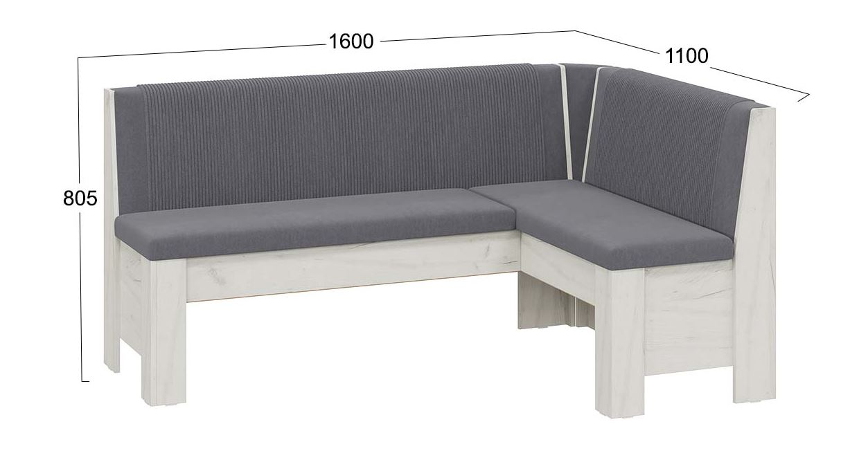 —Ганновер Скамья угловая(Дуб Крафт белый, Микровелюр Linea Grande 83/Connect 83 Cерый