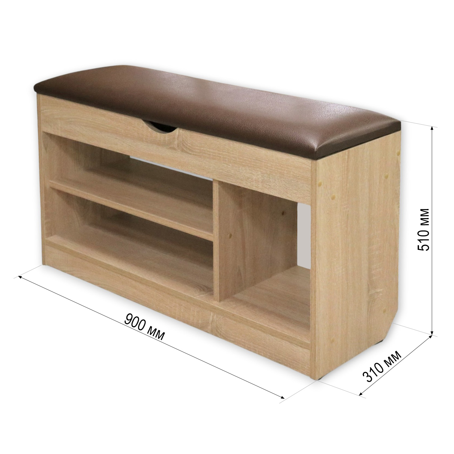Тумба для обуви БН-196-04 (900*310*510) дуб сонома/кожзам 305-02 корич
