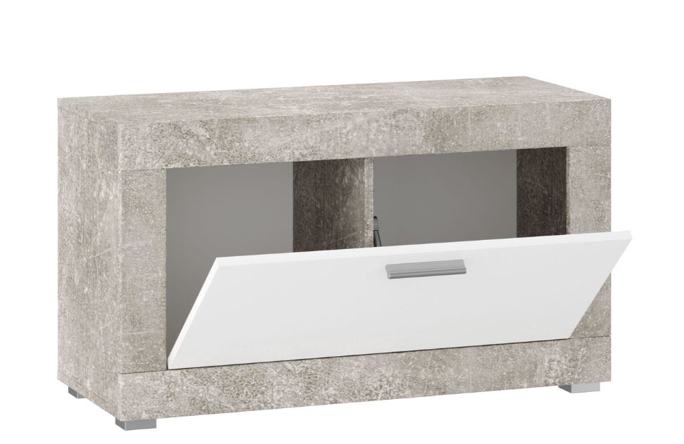 Тумба для обуви оснащена откидным механизмом открывания.
