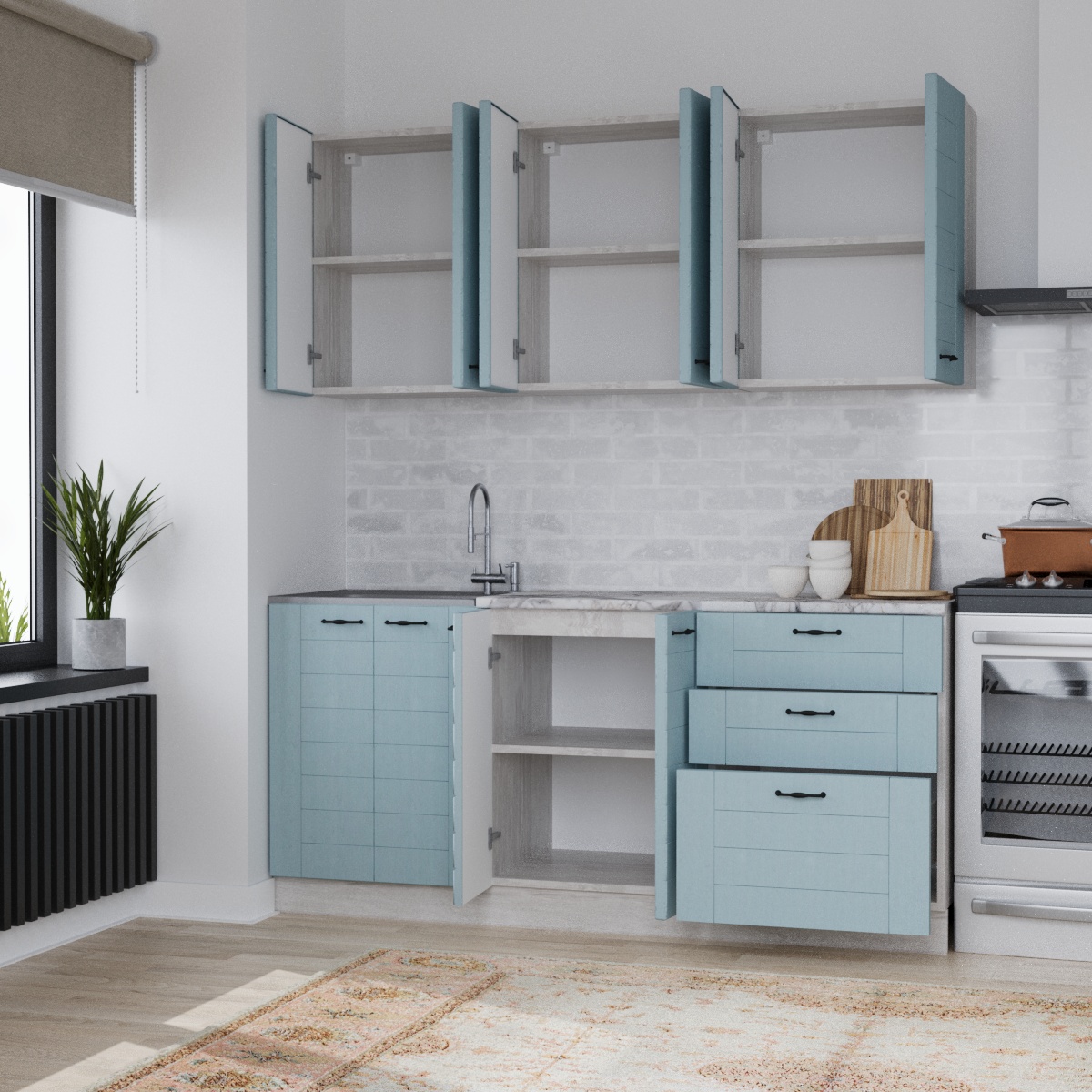 —Кухня СОНЕТ 1,8 м Сосна ЛОФТ / Дуб БИРЮЗА (столешница Альберика+Планка)