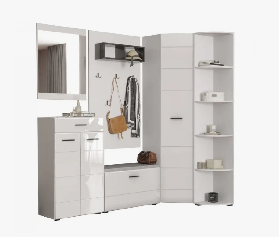 GLOSS Прихожая шкаф угловой Белый/Белый глянец