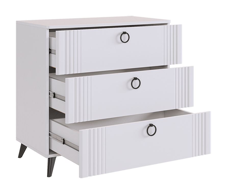 Комод Ева с 3 ящиками (800 мм) — белое дерево/белый матовый